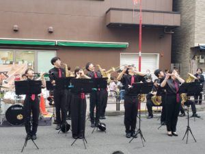 業務スーパー前では演奏はもちろん、皆さんもよく知っている曲でダンスや、