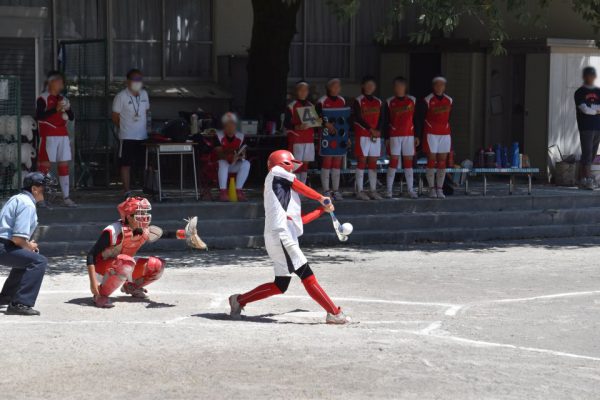 一矢報いたい4番バッター。初球を思いっきり左中間真っ二つのスリーベースヒット!!