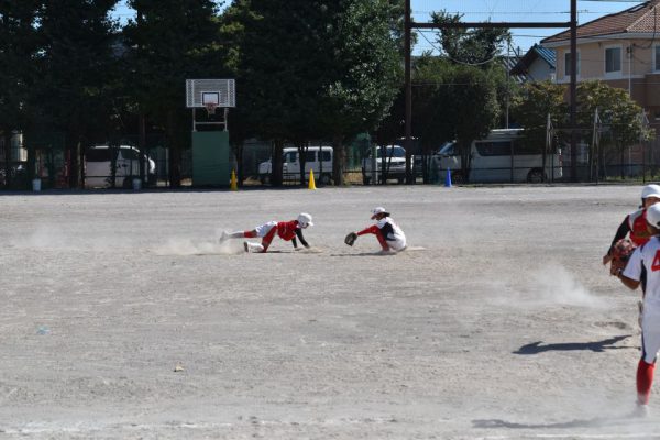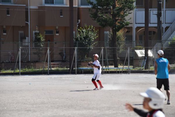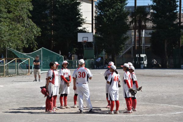 6回裏の上石神井中の攻撃は2番から。先頭バッターが通常であればセンターオーバーとなる当たりでしたが、深めに守っていたセンターがキャッチし1アウト。
