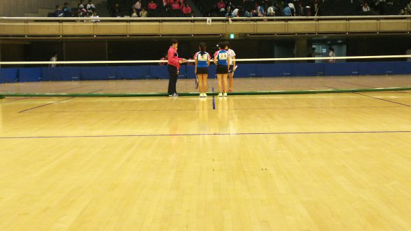 第2試合 北海道大会2位の 札幌龍谷学園高校(北海道) と対戦しました。この試合は、ゲームポイントは握るもののゲームが奪えず、0-④で敗れ、今後の課題が残るものとなりました。その後、第3試合の責任審判を終えてリーグ3位という結果で大会を終了しました。