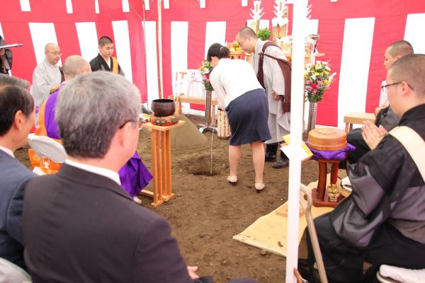 堀之内妙法寺の山田日潮上人(本学園理事長)により、工事の安全と堀之内学園発展のご祈願をいただきました。